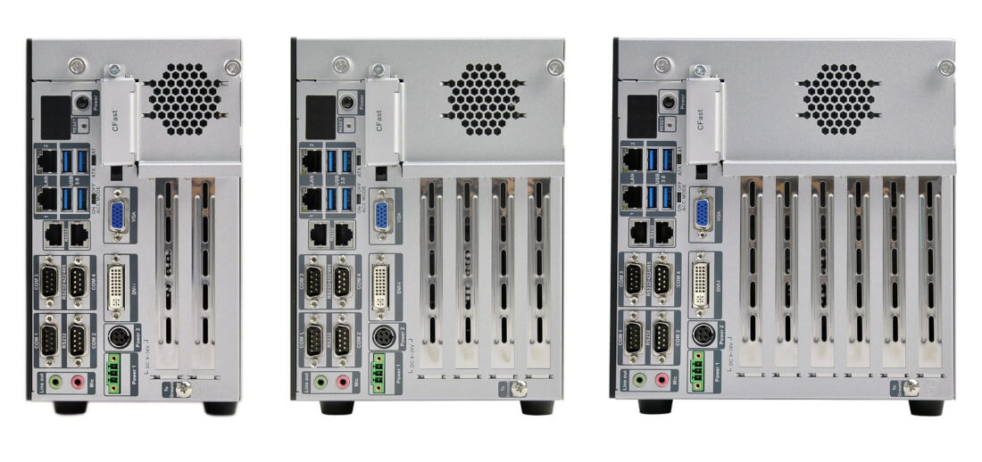 - 6-režni model: 1 x PCIe by 16, 2 x PCIe by 4, 3 x PCI, 2 x PCIe Mini slot